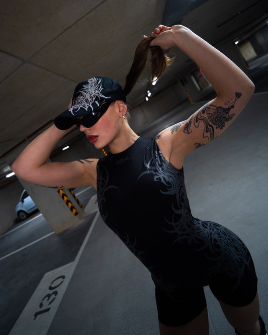 BLACK FERAL SIGILISM ONE-PIECE ROMPER