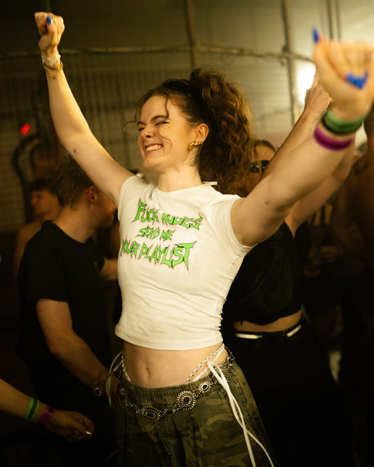 FUCK NUDES SEND ME YOUR PLAYLIST WHITE BABY TEE