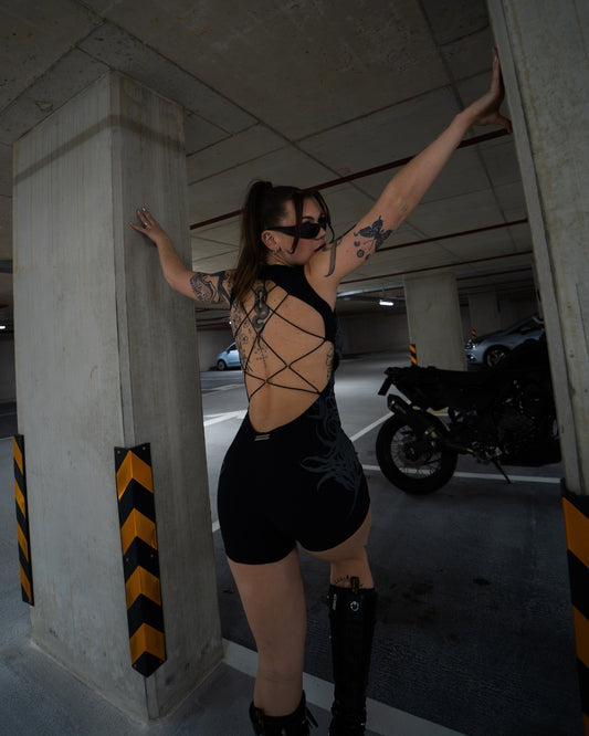 BLACK FERAL SIGILISM ONE-PIECE ROMPER